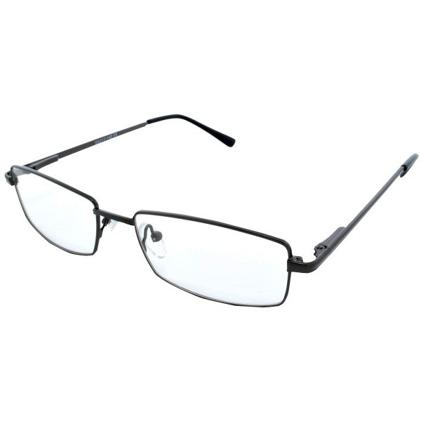 A commanding large men's metal eyeglass frame with sleek rectangular lenses