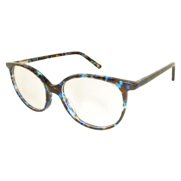 Elegant round styled frame with metal feature on temple and embossed diamond shapes on sides.