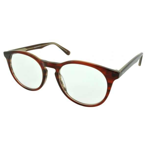 Smart and geeky round lens plastic frame with keyhole shaped nose bridge.