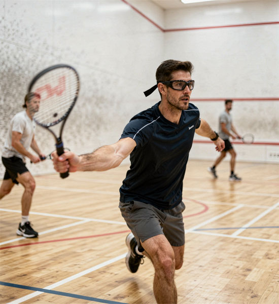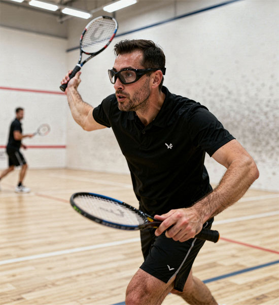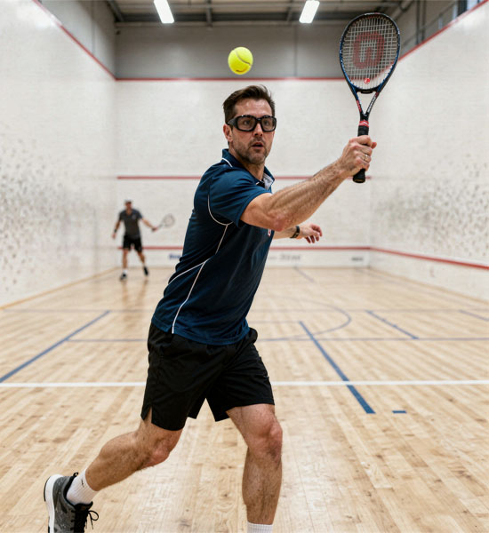 The same features that make prescription racquetball glasses essential also apply across squash, badminton, and other indoor racquet sports. Players who use prescription tennis goggles face many of the same challenges around speed, ball tracking, and eye safety. Squash players benefit from impact resistance and wraparound coverage, while badminton athletes appreciate a secure fit during rapid overhead movements.