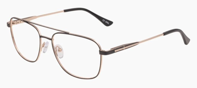 A commanding large men's metal eyeglass frame with sleek rectangular lenses, featuring a sophisticated black pinstripe outline that elegantly traces the rims for subtle contrast, accented by luxurious gold detailing on the bridge, hinges, and temples for a refined, high-end vibe.