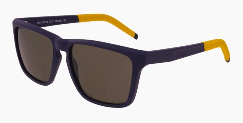 A bold pair of men's plastic sunglasses featuring large square lenses for maximum coverage, a classic keyhole bridge for vintage-inspired comfort, and vibrant brightly coloured tips on the sides that add a playful, eye-catching pop of personality.