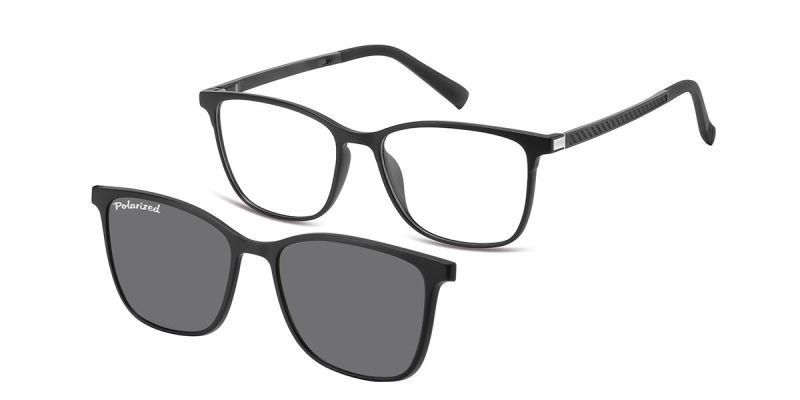 New arrival: Full-plastic frame with crisp square lenses and a perfectly matching magnetic polarized clip-on. Subtle carbon fibre texture weaves through the temples for understated tech-luxe—sharp geometry, seamless sun protection, quietly iconic.