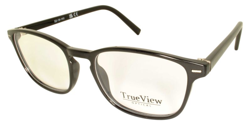 Men's full plastic frame with a keyhole bridge and rectangular metal stud accents on the front, blending classic and modern design..
